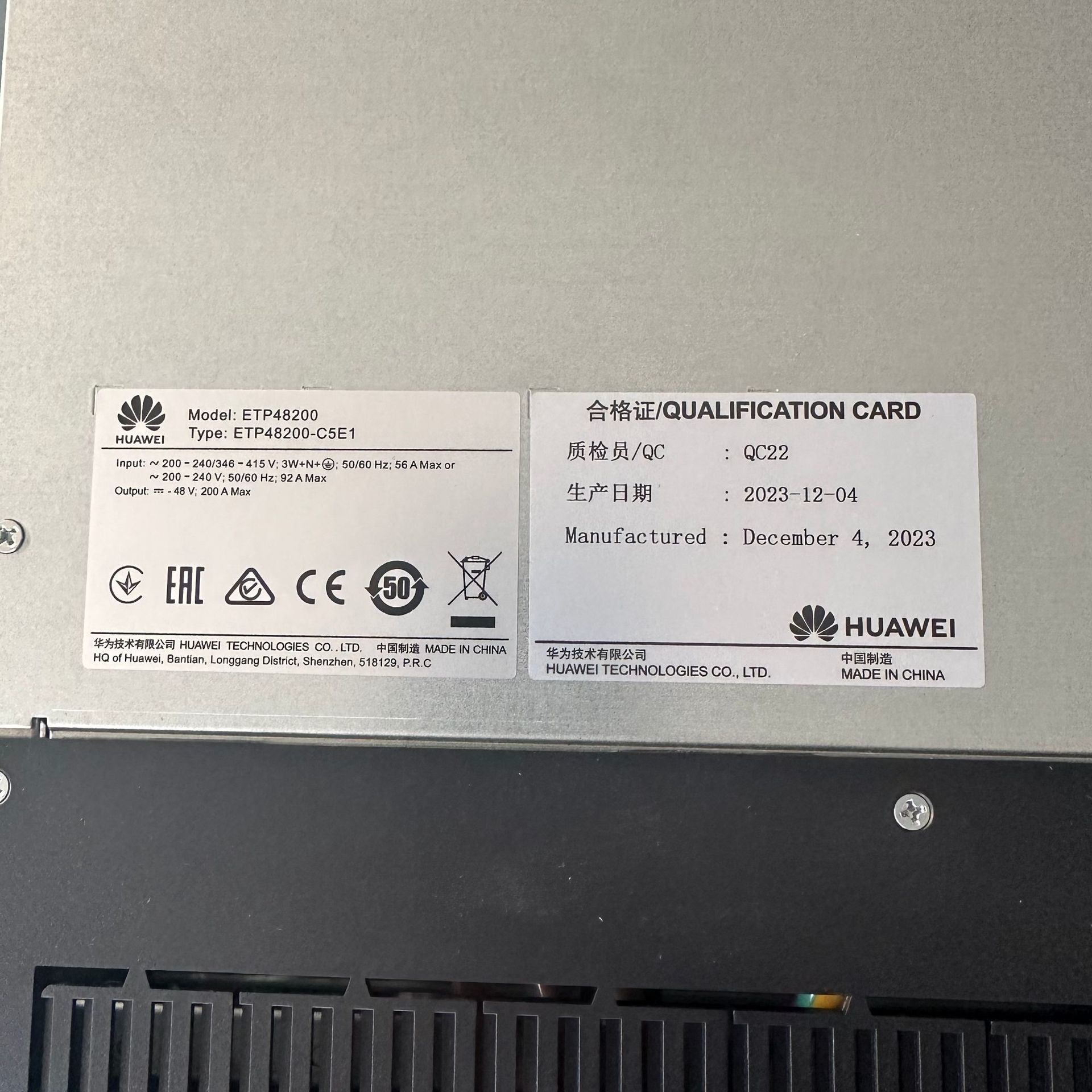 ETP48200-C5E1은 -48V DC를 공급하는 임베디드 통신 전원 시스템입니다.